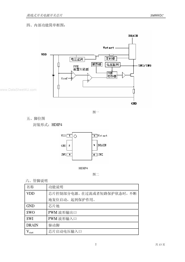 AC/DC PWM Controller, 700V, Idp=0.8A,Fosc=115kHz,Pout<12W