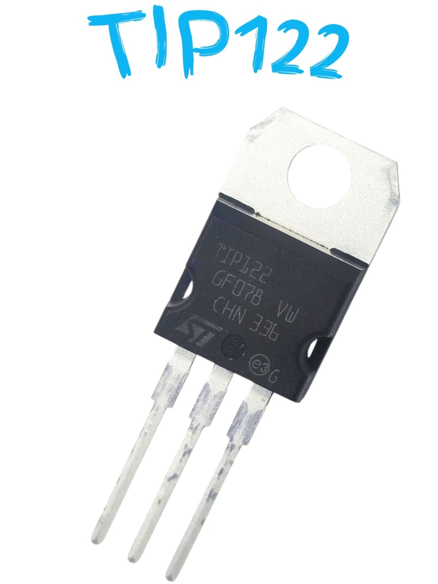 TIP122 — это NPN-транзистор Дарлингтона в корпусе TO-220 с высокой проводимостью, рассчитанный на максимальное напряжение коллектор-эмиттер до 100 В, постоянный ток коллектора до 5 А и рассеиваемую мощность до 65 Вт. Он обладает высоким коэффициентом усиления по току (hFE) не менее 1000, что делает его эффективным для управления мощной нагрузкой с помощью слабого базового тока.